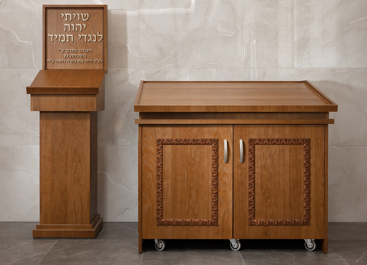 כשניגשים לתכנון וייצור ריהוט לבית כנסת, חשוב לוודא כי העבודה נעשית עם חומרי הגלם הטובים ביותר. חשוב לנו להגשים ולבצע את החלומות והתוכניות שלכם בדיוק כפי שאתם רוצים ולכן אנחנו מעניקים לכם מעטפת שירות מלאה, עם ייצור 'קאסטם מייד' לכל חלק או רהיט שאתם צריכים וצוות מומחים בעל ניסיון עשיר בריהוט בתי כנסת שיעבוד יחד איתכם על הפרטים הכי קטנים.